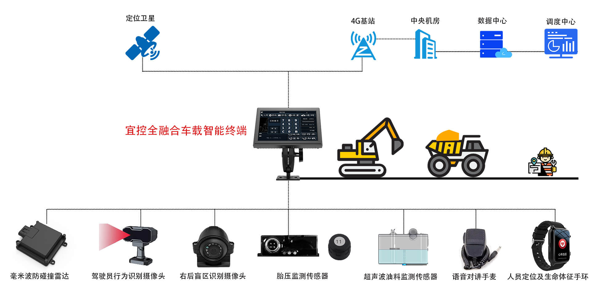 矿⼭行业目前正在大力推进数字化矿山建设步伐,如何利用信息技术提升安全、作业效率、降低成本和减少污染成为核心关注点。宜控智能车载终端产品作为系统的车载数据中心,为操作手提供完整的车辆信息、调度信息、生产信息及驾驶辅助、防碰撞预警,显著提升安全性、减少油耗、提升生产效率。